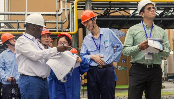 7月5日上午,OPCW視察組和國家代表、省市陪同人員在聽(tīng)取核查前情況介紹后,共同前往公司生產(chǎn)區域進(jìn)行了現場(chǎng)核查。視察組一行在察看企業(yè)總平面布置之后,分別對生產(chǎn)裝置、工藝流程等作了詳細了解,核實(shí)了企業(yè)生產(chǎn)經(jīng)營(yíng)中的相關(guān)記錄、原始臺賬、報表等,公司陪同人員客觀(guān)、專(zhuān)業(yè)的回答了核查組提出的各類(lèi)問(wèn)題。